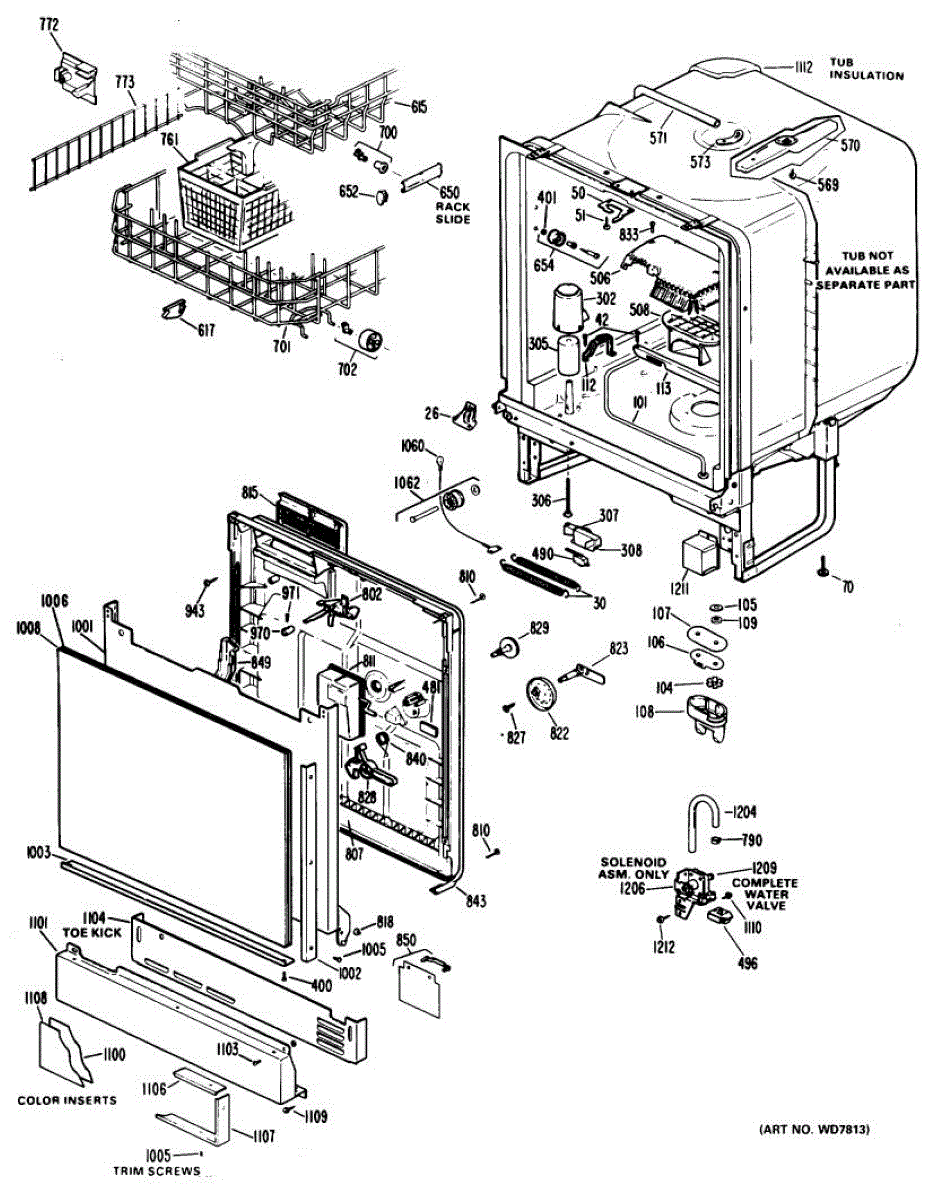 The Tub Corner Baffle is an OEM part for GE dishwashers. It is strategically placed at the corners of the dishwasher tub to prevent water from leaking out during operation. For the left side use WD8X228. Color: Black.