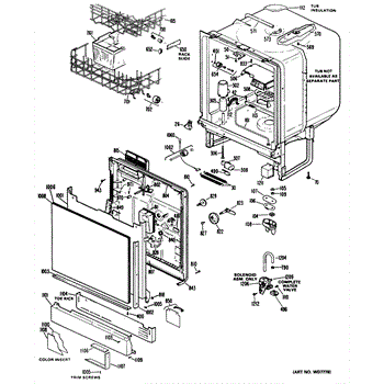 The Upper Rack is an OEM replacement part for GE dishwashers. It provides movable shelf space along the top of the dishwasher interior for washing plates, bowls, and other dishes. The shelves feature an adjustable design that accommodates various sizes and configurations of dishware. Causes of failure include normal wear and tear, accidental impacts that damage shelves or cleaning chemicals stripping away protective coatings. Symptoms of a bad upper rack can include: