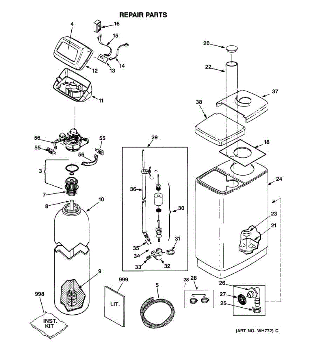 • Directs brine solution flow during the softener regeneration cycle to flush and recharge the resin bed.
