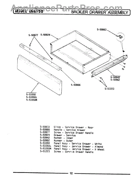 Parts for Maytag CRG750: 01 - Broiler Drawer Parts