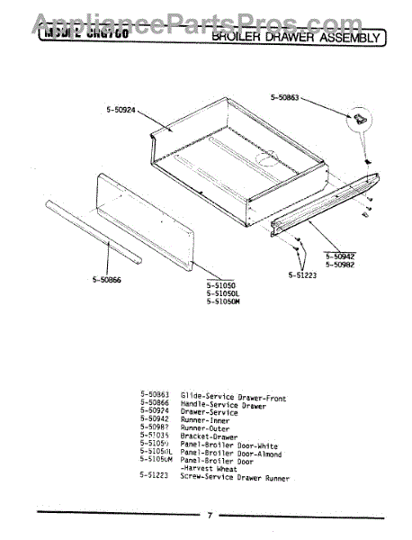 Parts for Maytag LCRG700: 01 - Broiler Drawer Parts