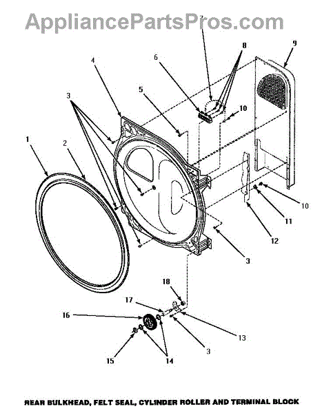 Parts for Amana AEM427L2: 01 - Bulkhead / Felt Seal / Cyl Roller & Term Blk Parts