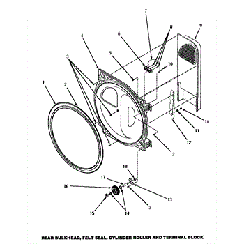 Parts for Amana AEM427W2: 01 - Bulkhead / Felt Seal / Cyl Roller & Term Blk Parts