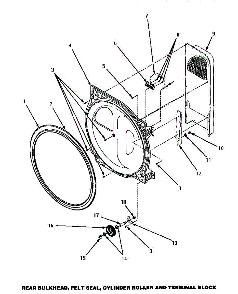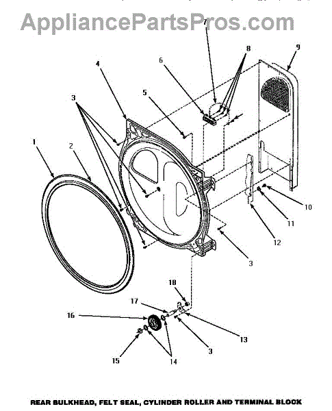 The Dryer Drum Felt Seal is an OEM part for Whirlpool dryers. This seal ensures a tight fit between the dryer drum and the rear bulkhead, preventing air leaks and maintaining proper drum alignment during the drying cycle. The seal measures approximately 36 inches in length and 1 inch in width. Please note, adhesive for installation is not included.