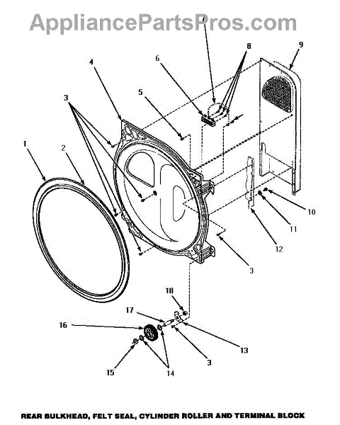 The Dryer Drum Felt Seal is an OEM part for Whirlpool dryers. This seal ensures a tight fit between the dryer drum and the rear bulkhead, preventing air leaks and maintaining proper drum alignment during the drying cycle. The seal measures approximately 36 inches in length and 1 inch in width. Please note, adhesive for installation is not included.