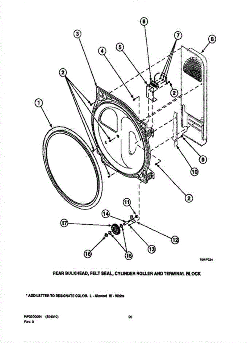 Parts for Amana LGS19AW / PLGS19AW: 08 - Bulkhead / Felt Seal / Cyl Roller & Term Blk Parts