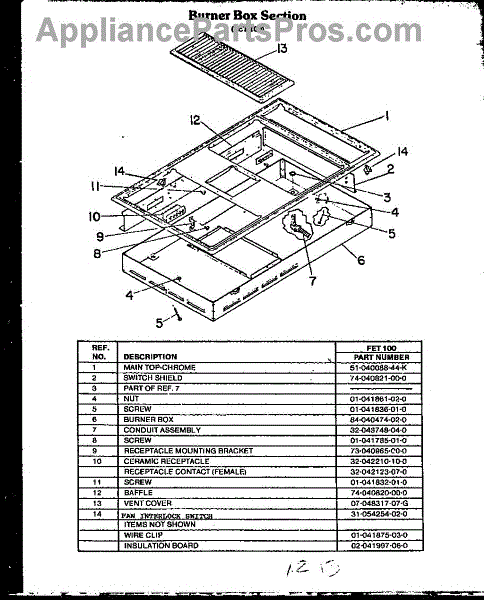 Parts for Amana FET100: 01 - Burner Box Section Parts