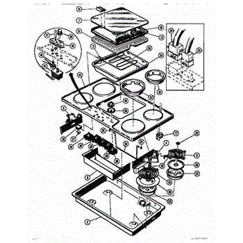 Parts for Thermador CV2136: 01 - Burner Box Parts