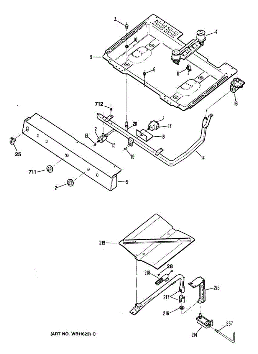 Parts for Ge RGB628ET1WH: 01 - Section1 Parts