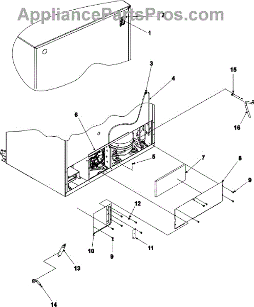 This acoustic fiber is the sound-absorbing insulation used in a refrigerator's machine compartment. Replacing a missing or damaged pad reduces operating noise from the compressor area and helps maintain the unit's intended sound levels.