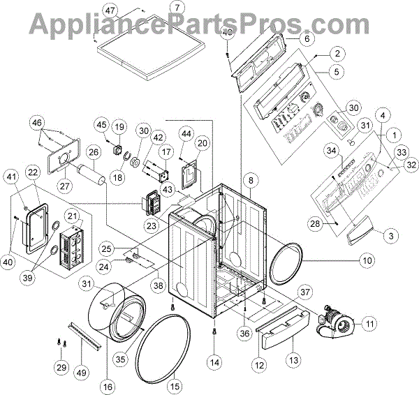 This factory screw secures appliance components to their mounting points. Replace missing, worn, or stripped hardware to restore a tight fit, proper alignment, and quieter operation across the affected assembly.