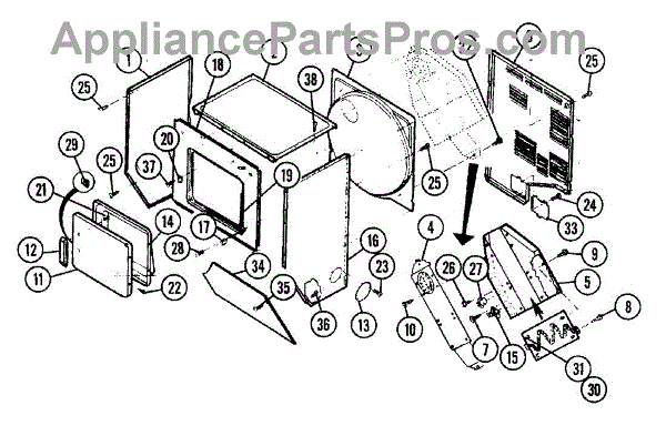 This factory fastener secures panels, trim, or brackets on your appliance. Replacing a missing or stripped screw restores a snug, rattle-free fit and keeps components aligned for proper operation and a clean, finished appearance.