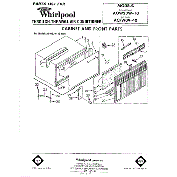 Parts for Whirlpool ACFW0940: 01 - Cabinet And Front Parts