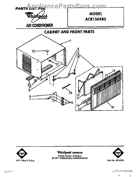 Parts for Whirlpool ACR124XR2: 01 - Cabinet And Front Parts