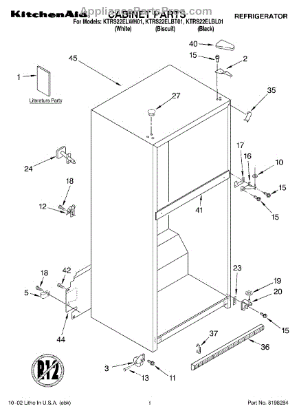 Parts for Kitchenaid KTRS22ELBL01: 01 - Cabinet, Literature Parts