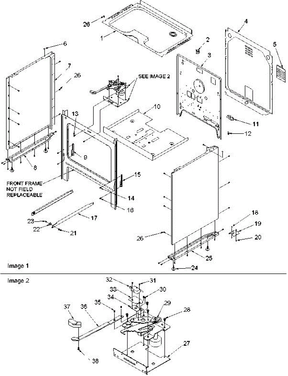 Mounting screw secures panels, brackets, and trim to the appliance frame. Replace if screw is stripped, missing, or damaged to restore secure fastening.