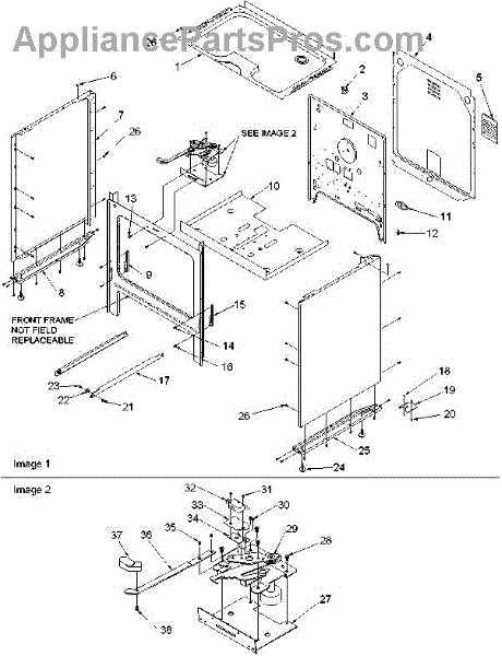 Mounting screw secures panels, brackets, and trim to the appliance frame. Replace if screw is stripped, missing, or damaged to restore secure fastening.