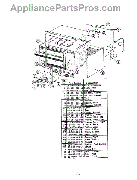 Parts for Hardwick EL214-450: 01 - Cabinet Parts