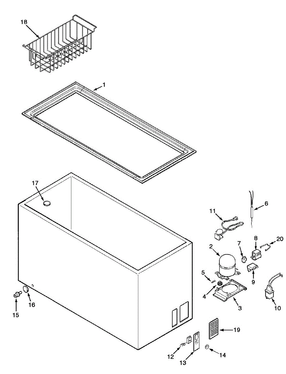 Control box housing for freezers and chest freezers. Protects electrical controls from damage. Replace if cracked, broken, or missing to secure wiring.