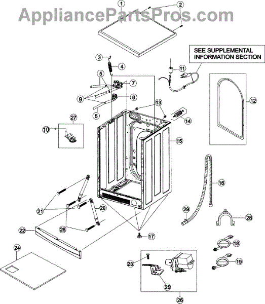 This drain pump assembly removes wastewater from the washer during the drain and spin portions of the cycle. Replacing a weak or failed pump helps the washer finish cycles without standing water, odors, or error interruptions.