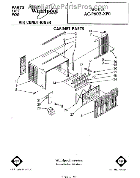 Parts for Whirlpool ACP602XP0: 01 - Cabinet Parts