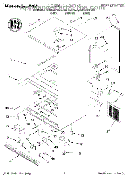 Parts for Kitchenaid KBRS22KFWH0: 01 - Cabinet Parts