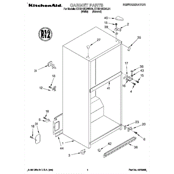 Parts for Kitchenaid KTHD18KDAL01: 01 - Cabinet Parts