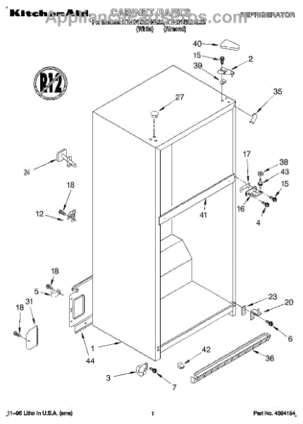 Parts for Kitchenaid KTHD18KDWH03: 01 - Cabinet Parts
