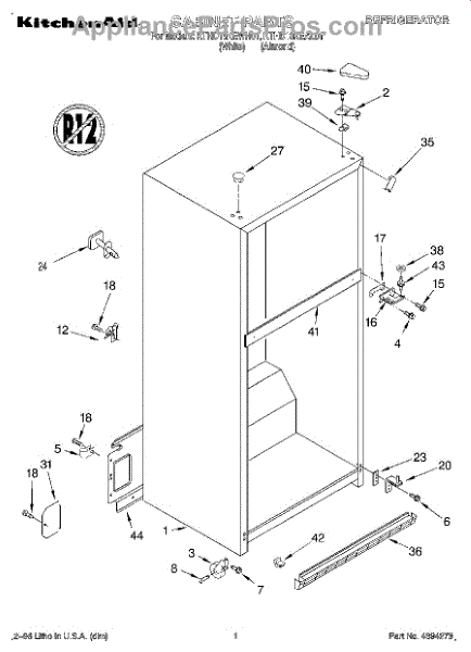 Parts for Kitchenaid KTHD18KEAL01: 01 - Cabinet Parts