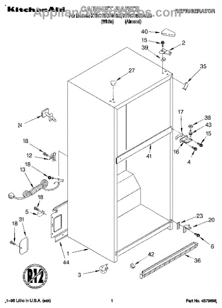Parts for Kitchenaid KTRC18KDAL00: 01 - Cabinet Parts