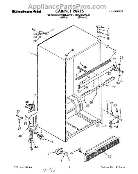 The Hinge Washer is an OEM replacement part for Whirlpool refrigerators. This small washer plays a supports the refrigerator door hinge assembly. Center hinge plastic washer. Causes of a bad hinge washer are generally normal wear and tear from extensive use. As the washer absorbs pressure each time the door is opened or closed, it can gradually deteriorate or crack. Physical damage is also possible if the door is accidentally struck or slammed. Symptoms of a worn or damaged hinge washer include: