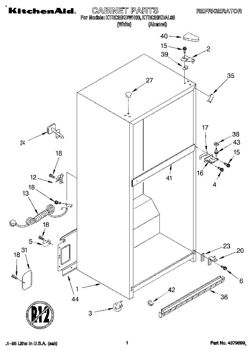 Parts for Kitchenaid KTRC20KDWH00: 01 - Cabinet Parts