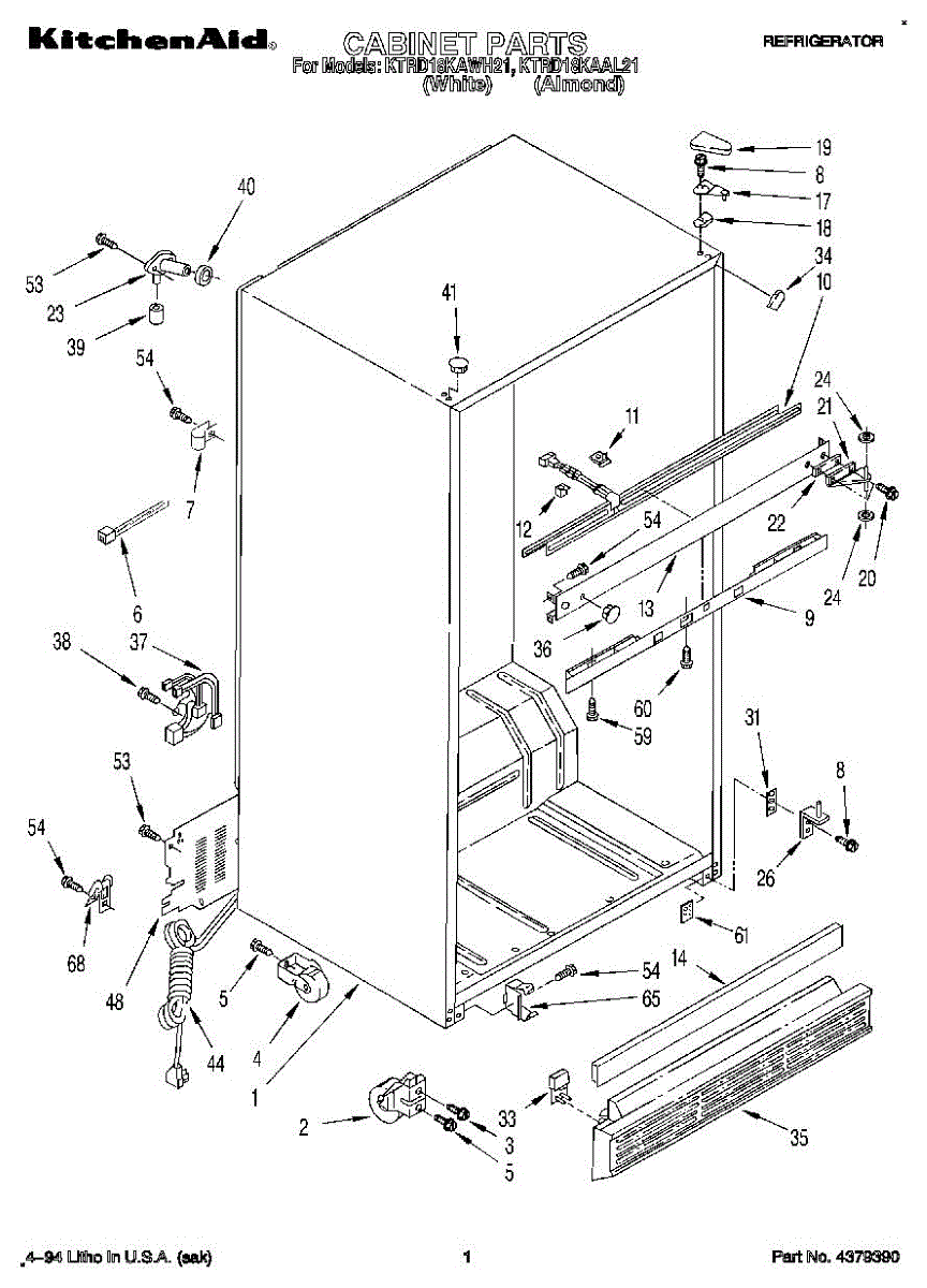 Parts for Kitchenaid KTRD18KAWH21: 01 - Cabinet Parts