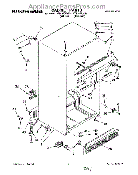 This cabinet roller assembly supports the refrigerator at the base and lets you roll the unit forward for cleaning or service. Replace a cracked or seized roller to restore smooth movement and a stable, level stance. What it does: