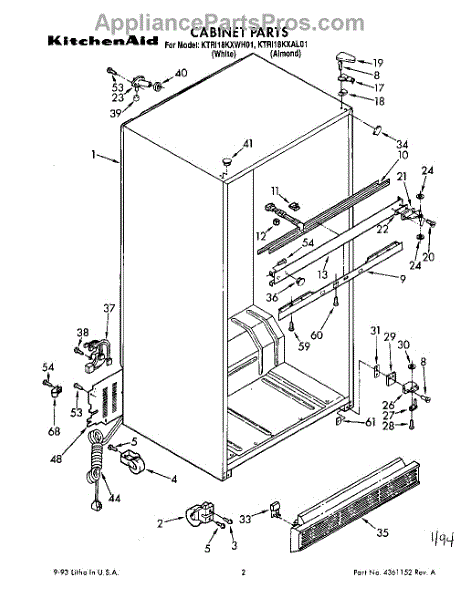 The Hinge Washer is an OEM replacement part for Whirlpool refrigerators. This small washer plays a supports the refrigerator door hinge assembly. Center hinge plastic washer. Causes of a bad hinge washer are generally normal wear and tear from extensive use. As the washer absorbs pressure each time the door is opened or closed, it can gradually deteriorate or crack. Physical damage is also possible if the door is accidentally struck or slammed. Symptoms of a worn or damaged hinge washer include: