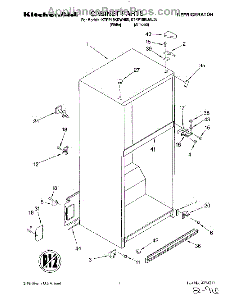 Parts for Kitchenaid KTRP18KDAL05: 01 - Cabinet Parts