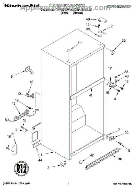 Parts for Kitchenaid KTRP18KDWH00: 01 - Cabinet Parts