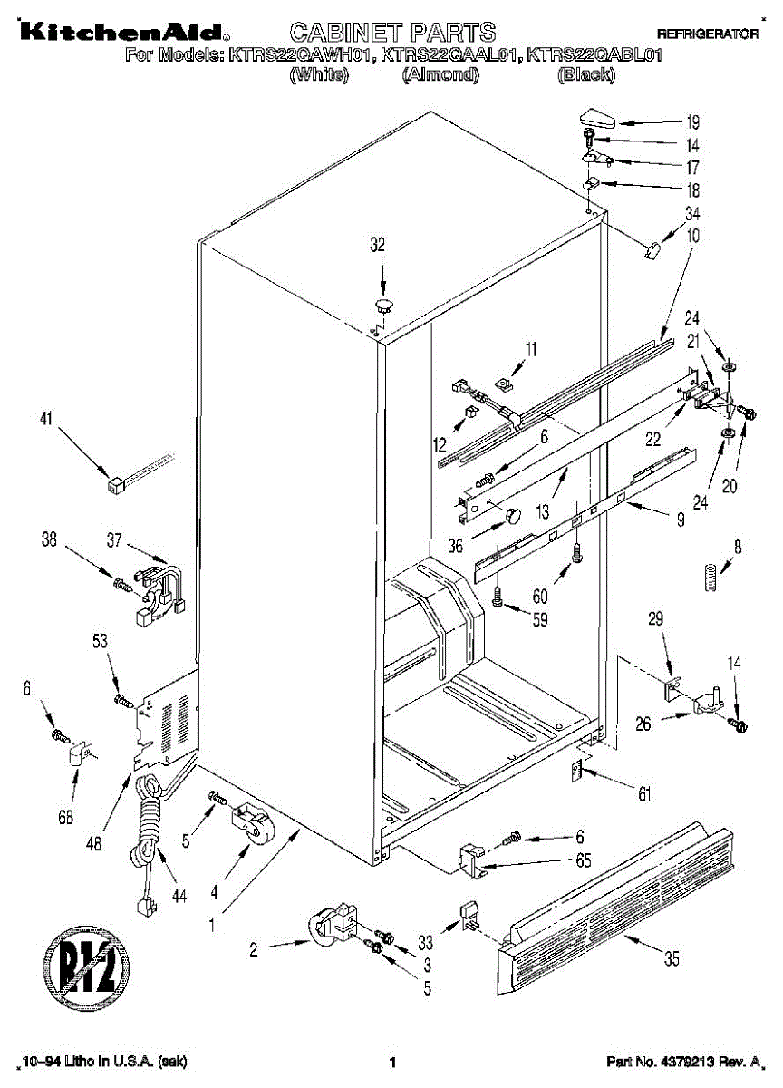 This cabinet roller assembly supports the refrigerator at the base and lets you roll the unit forward for cleaning or service. Replace a cracked or seized roller to restore smooth movement and a stable, level stance. What it does: