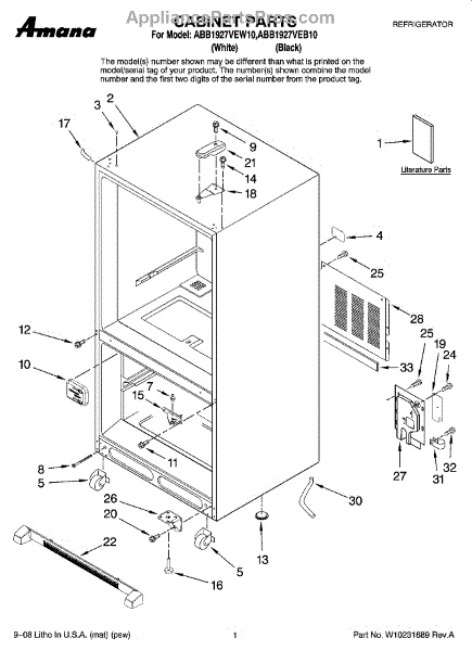 Parts for Maytag ABB1927VEB10: 01 - Cabinet Parts