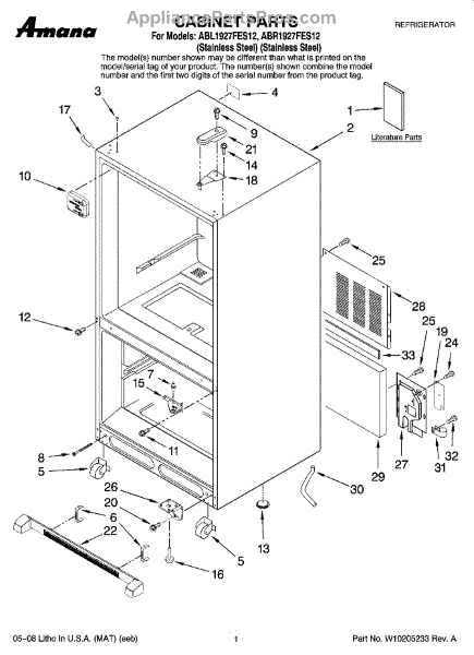 Secures panels, brackets, hinge covers, and internal components inside your refrigerator. Replace missing or stripped screws for rattle-free assembly.