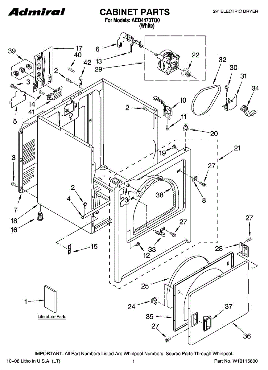 Fits all Whirlpool-made dryers (Whirlpool, Kenmore with prefix 110, Roper, KitchenAid, and Estate). Matching belt 341241 and rear support rollers 349241T. Whirlpool dryer repair manual 677818L.