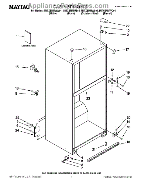Parts for Maytag M1TXEMMWS04: 01 - Cabinet Parts