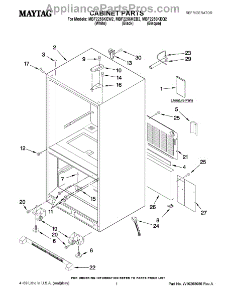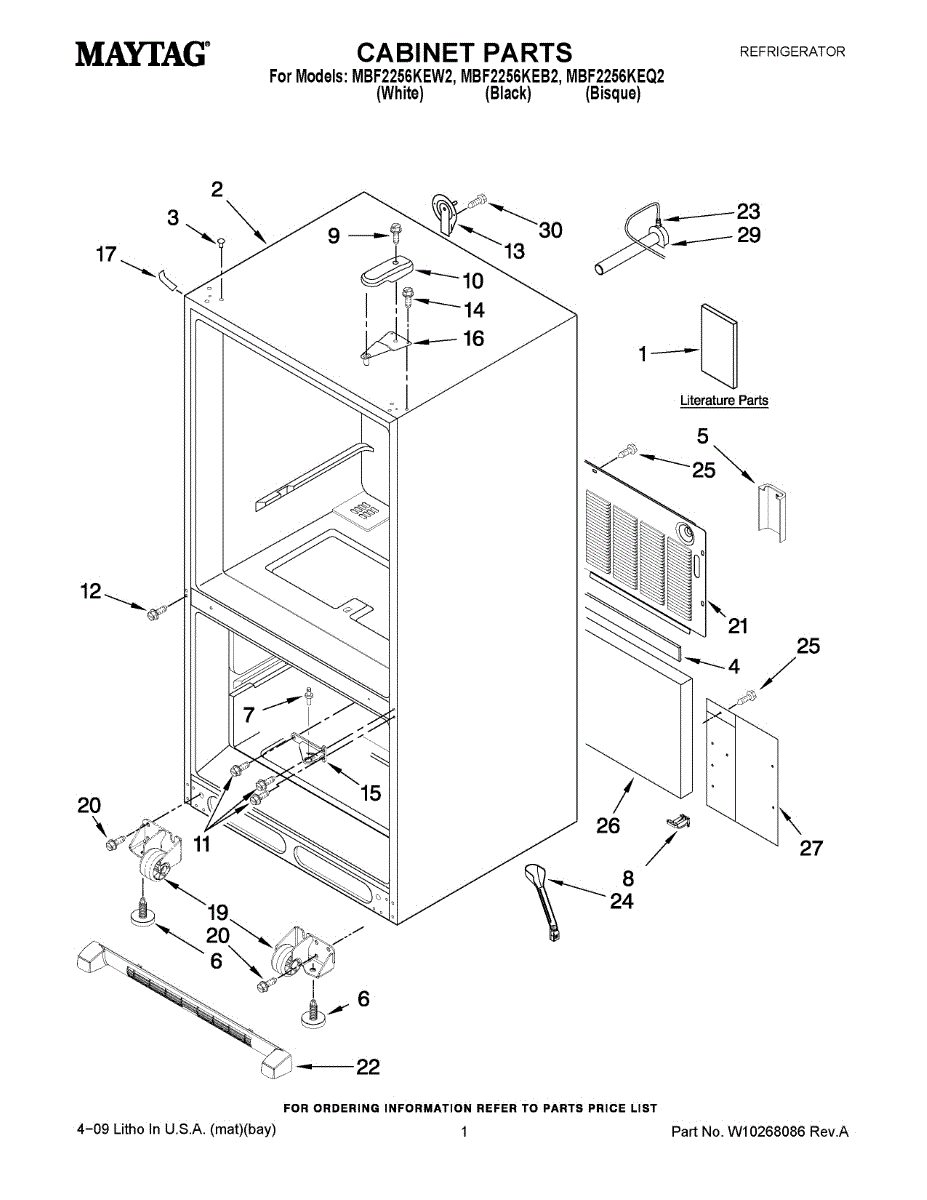 Parts for Maytag MBF2256KEW2: 01 - Cabinet Parts