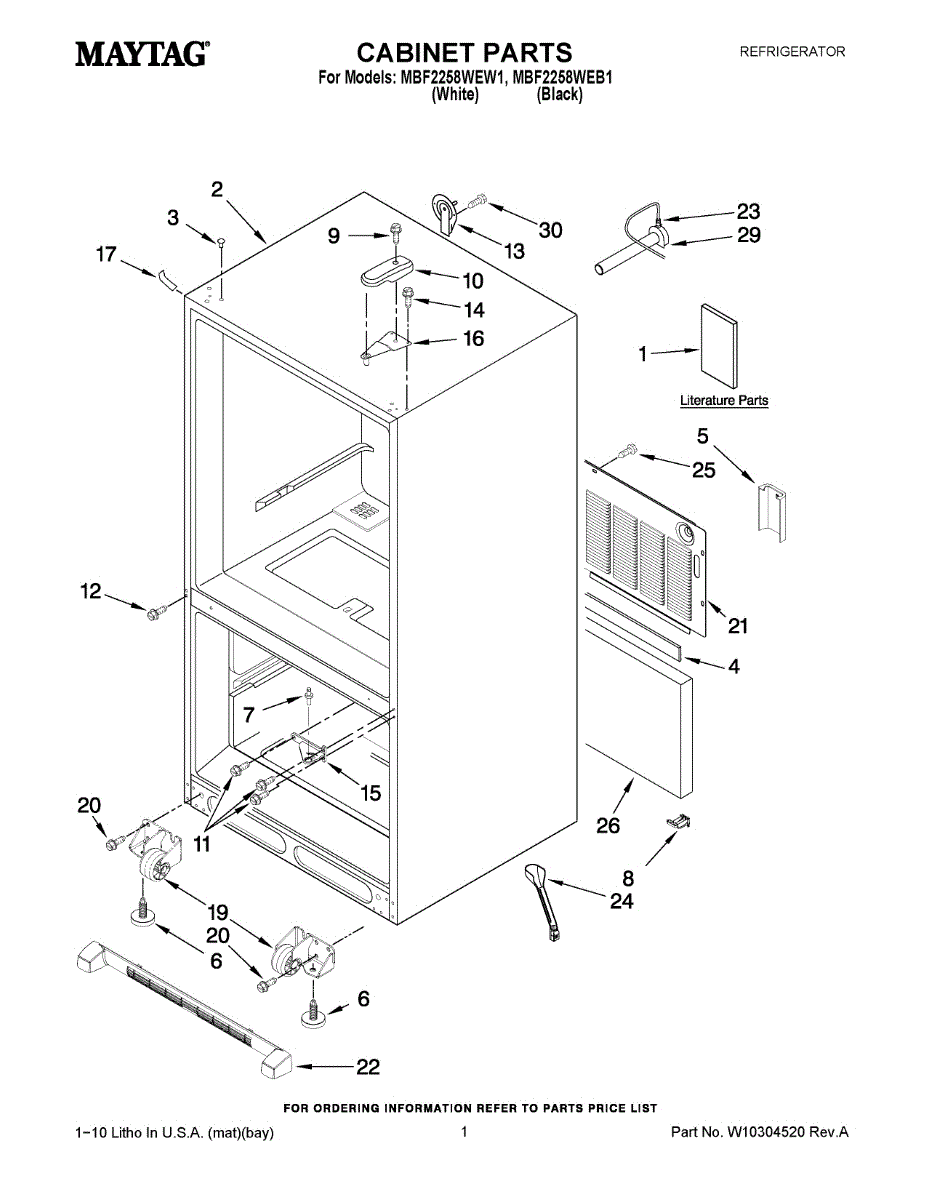 The Leveling Leg is an OEM replacement part for Whirlpool refrigerators. It is one of four legs situated internally at the base corners for proper tilt positioning. It raises or lowers each leg independently to stabilize units on uneven kitchen floors. Causes of replacement consist of wear from continual torque required during positioning processes. Thread damage or corrosion buildup attributable to floor locations over extended use necessitates periodic renewal as well. Symptoms involve: