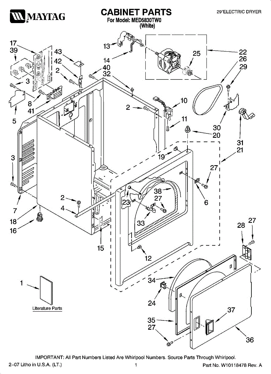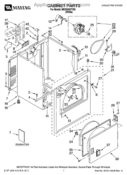 Parts for Maytag MED5830TW0: 01 - Cabinet Parts