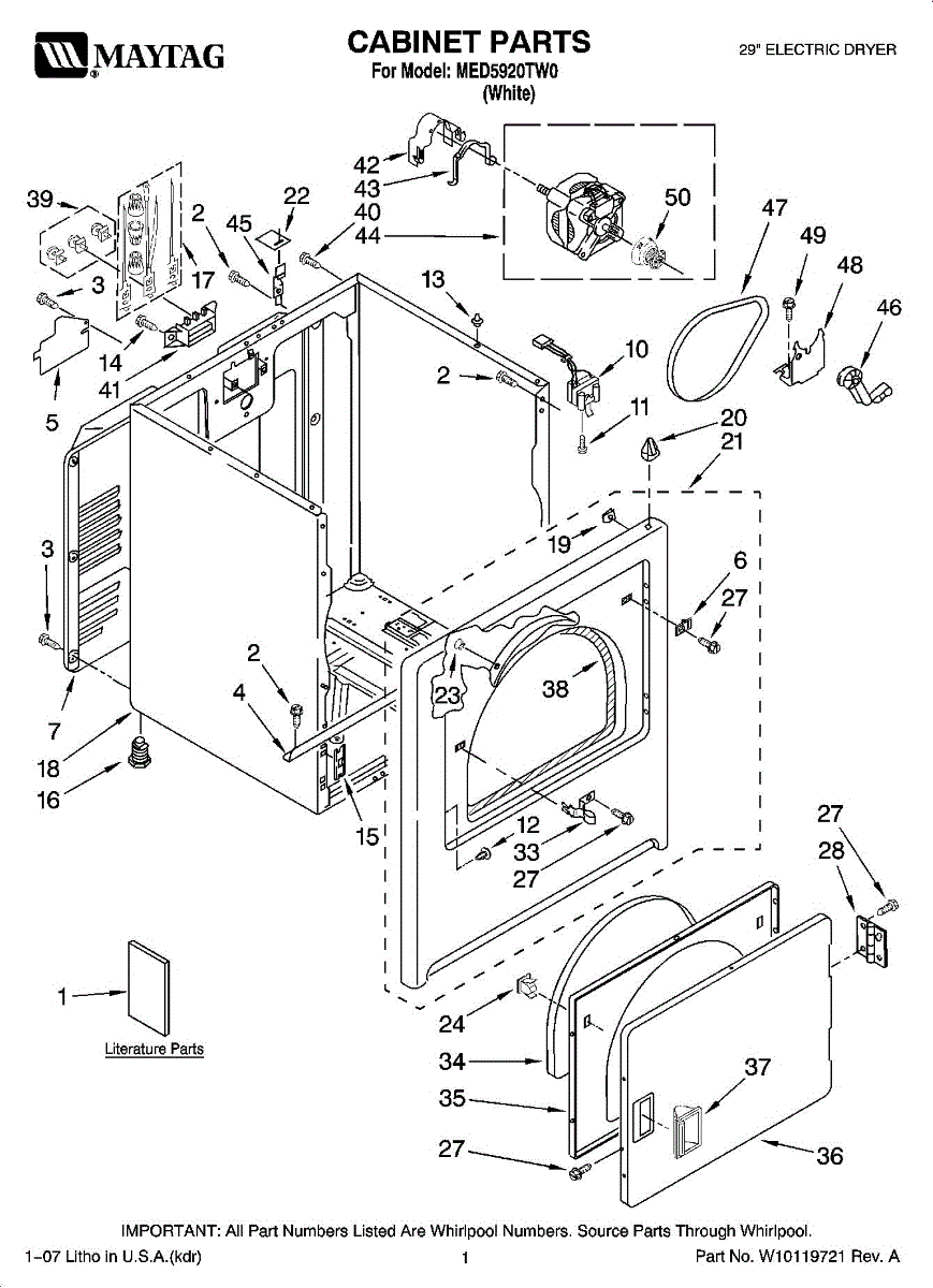 Parts for Maytag MED5920TW0: 01 - Cabinet Parts
