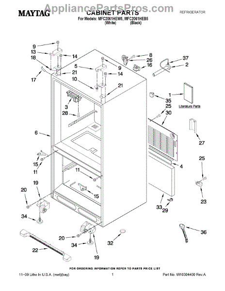 Parts for Maytag MFC2061HEW5: 01 - Cabinet Parts