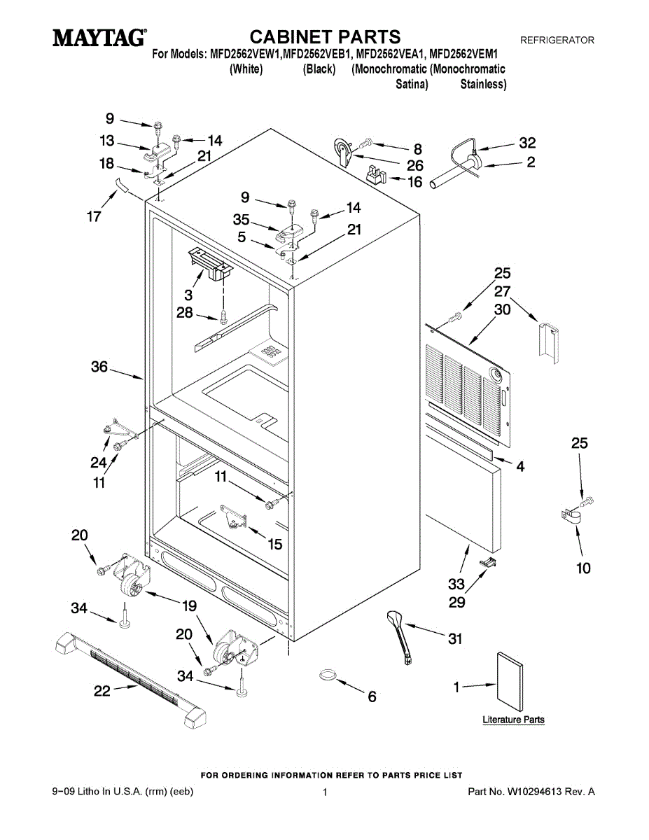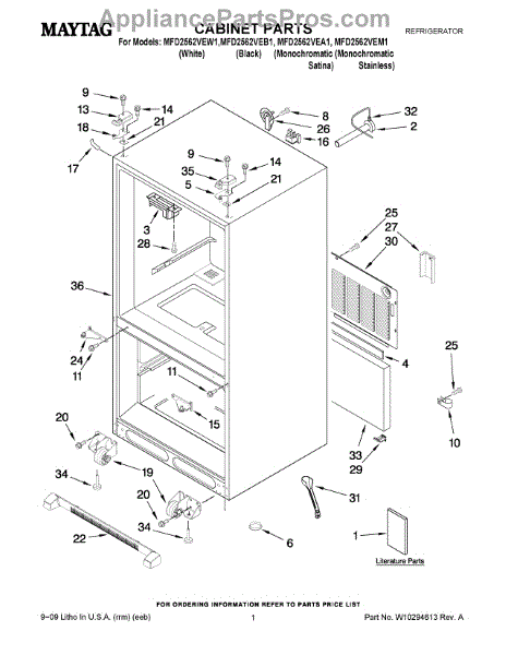 Back cover panel for bottom-mount refrigerators. Replaces cracked, broken, or missing rear cover. Installs on the back exterior of the unit.