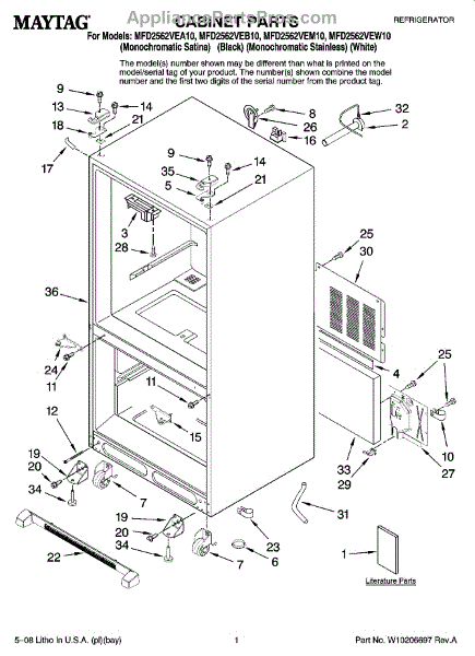 Secures panels, brackets, hinge covers, and internal components inside your refrigerator. Replace missing or stripped screws for rattle-free assembly.