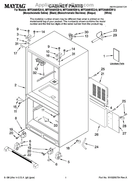 Secures panels, brackets, hinge covers, and internal components inside your refrigerator. Replace missing or stripped screws for rattle-free assembly.